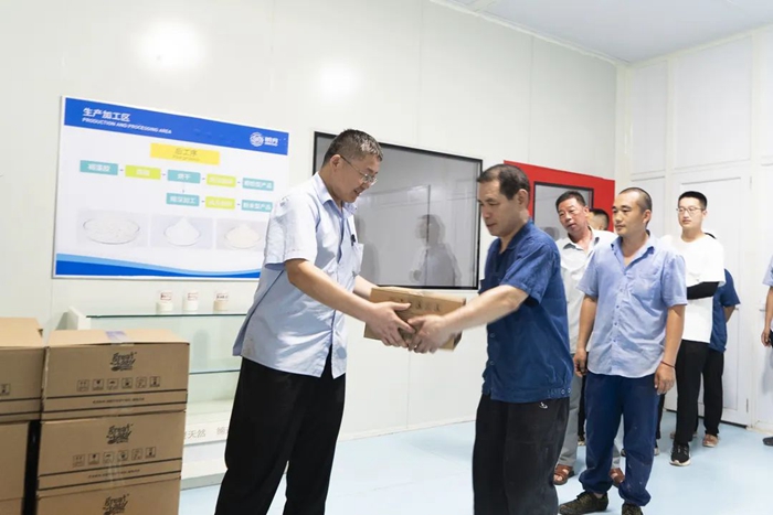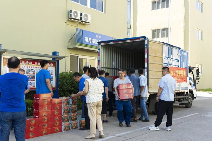 心系職工送清涼,一縷清風入心田。隨著區總工會“夏送清涼”活動的開展,8月3日,區總工會副主席朱長濤、生產保護部部長李輝赴明月海藻集團為廣大一線員工送來了礦泉水、飲料、毛巾、洗發水、沐浴露、花露水等慰問品。集團黨委副書記逄錦龍、工會主席楊曉菁陪同。