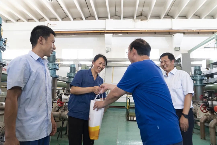 在慰問過程中,朱長濤首先了解了集團在高溫作業和高溫天氣作業勞動保護工作的開展情況,并深入生產一線將“清涼”送到職工手中。