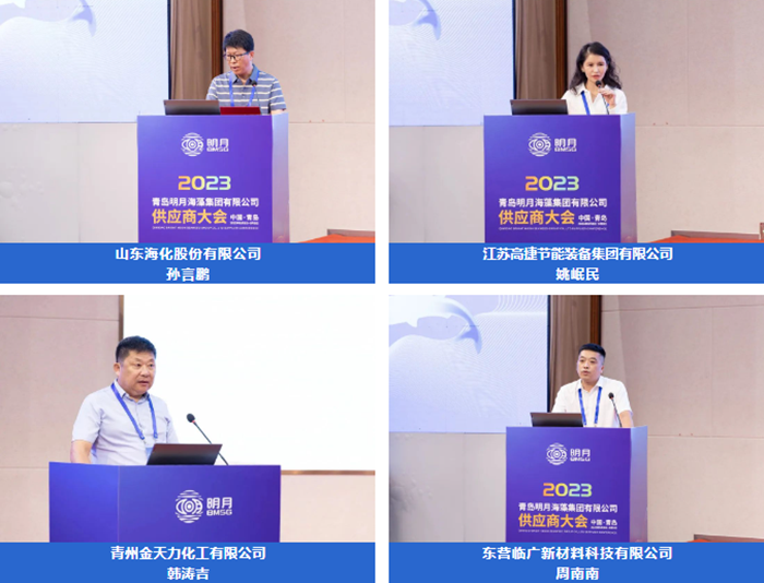 山東?;煞萦邢薰緦O言鵬、江蘇高捷節能裝備集團有限公司姚岷民、青州金天力化工有限公司韓濤吉、東營臨廣新材料科技有限公司周南南幾位供應商代表上臺分享“他們和明月的故事”。通過他們的講述,讓大家全方位、多角度地了解了一個充滿情懷與溫度的多彩明月。