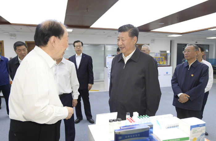 2018年6月12日上午,習近平在青島海洋科學與技術試點國家實驗室,聽取了79歲的中國工程院院士管華詩關于海洋藥物研發情況的介紹。