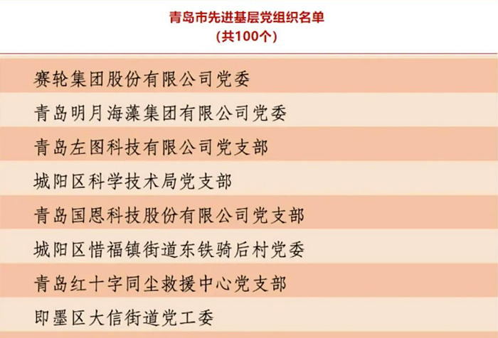 日前,《中共青島市委關于表彰青島市優秀共產黨員、優秀黨務工作者和先進基層黨組織的決定》發布,青島明月海藻集團有限公司黨委榜上有名,獲評“青島市先進基層黨組織”稱號。