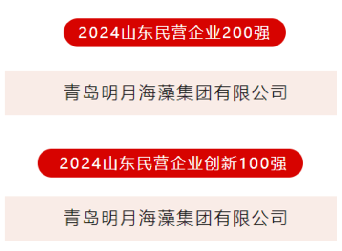 本次榜單由山東省工商聯(lián)、山東省發(fā)展改革委、山東省科技廳等多個部門聯(lián)合發(fā)布,經(jīng)過企業(yè)申報、各市推薦、專家審核及成員單位意見征求等多輪嚴格篩選,最終確定了包括“2024山東民營企業(yè)200強”、“2024山東民營企業(yè)創(chuàng)新100強”在內的多項榮譽榜單。明月海藻集團憑借其在海洋資源開發(fā)、健康產業(yè)拓展及技術創(chuàng)新等方面的顯著成就,不僅入選了“2024山東民營企業(yè)200強”,還榮膺“2024山東民營企業(yè)創(chuàng)新100強”,展現(xiàn)了集團強大的綜合實力和創(chuàng)新活力。