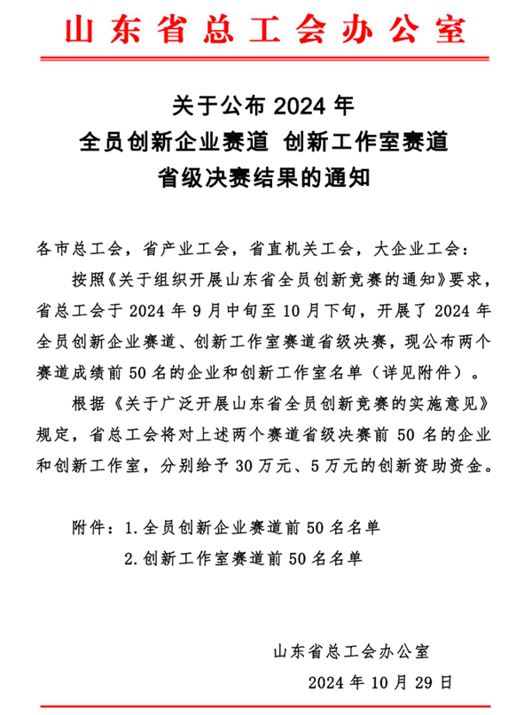 近日,山東省總工會公布2024年全員創新企業賽道、創新工作室賽道名單,青島明月海藻集團有限公司在全員創新企業賽道成功入選。